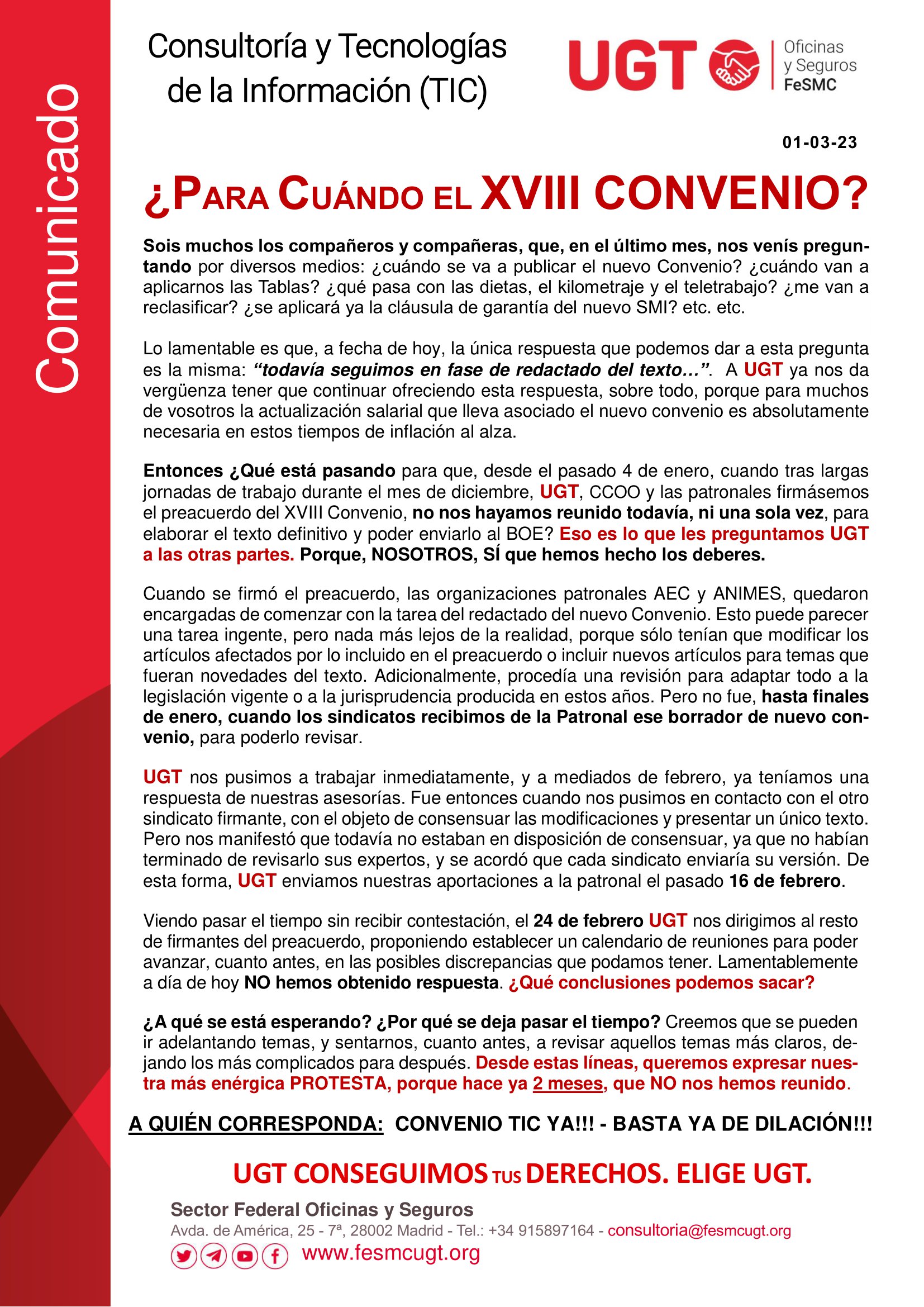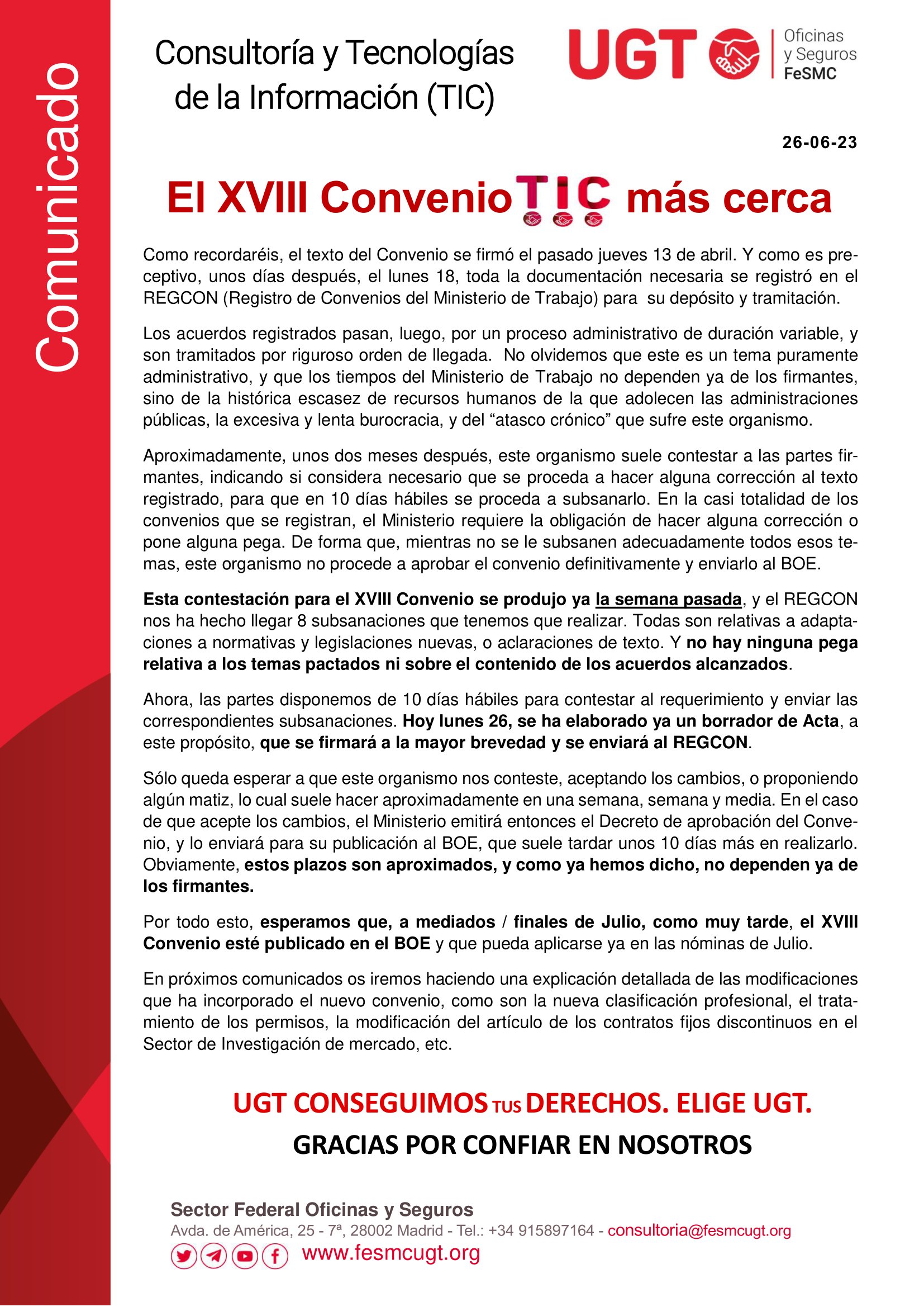 Comunicado UGT Convenio XVIII huelga parcial 23 junio