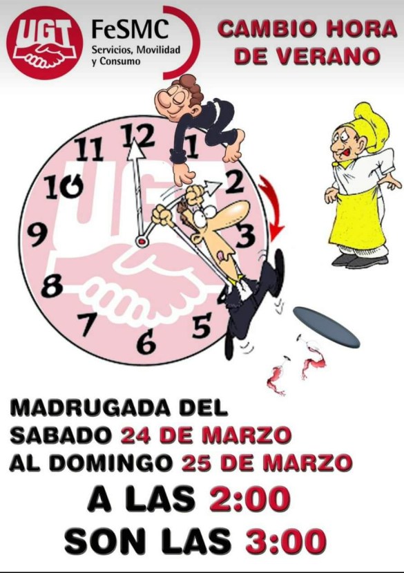 La madrugada del sábado 24 al domingo 25 de marzo a las 02:00 de la mañana se producirá el adelanto de una hora pasando a ser las 03:00.