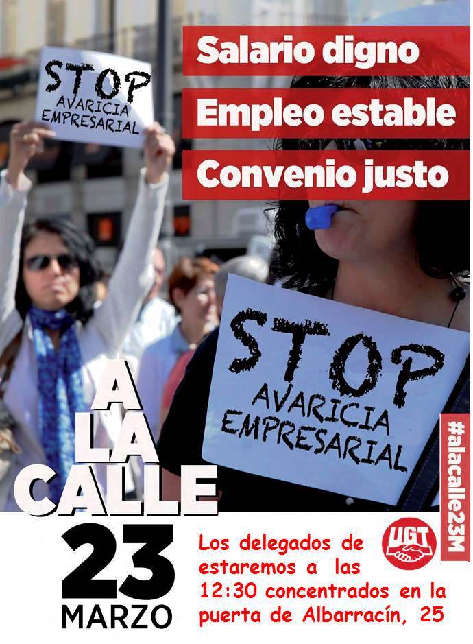 Sobran razones para la movilización. Por ello, convocamos el 23 de marzo asambleas informativas en los centros de trabajo y concentraciones.